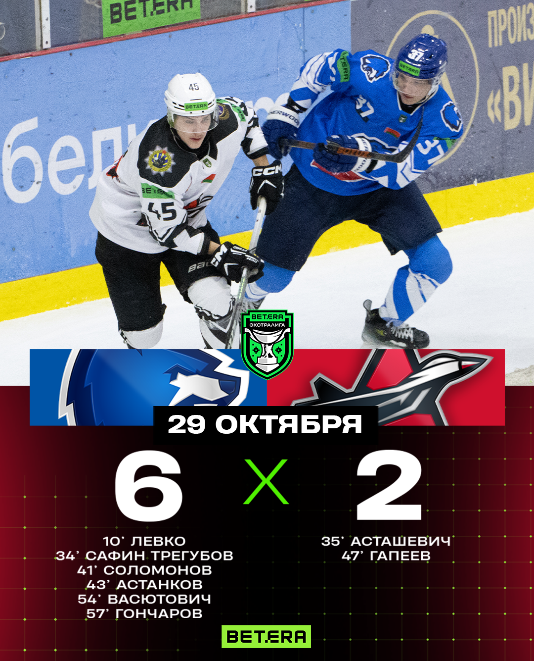 6:2 – Гончаров (Камбович, Астанков, 56.01).