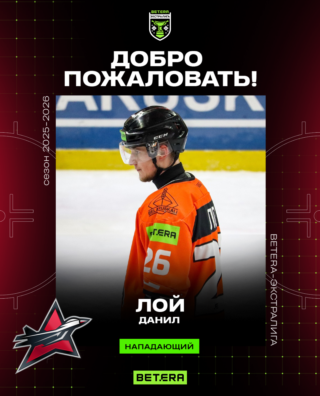 В прошлом сезоне после завершения регулярки Данил Лой отправился в Пинск, чтобы стать серебряным призером высшей лиги в составе «Ястребов». С 17 (9+8) очками молодой форвард стал лучшим бомбардиром плей-офф высшей лиги.