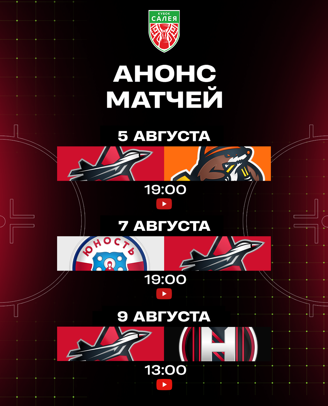 Напоминаем, что на все домашние матчи Кубка Салея ВХОД СВОБОДНЫЙ!