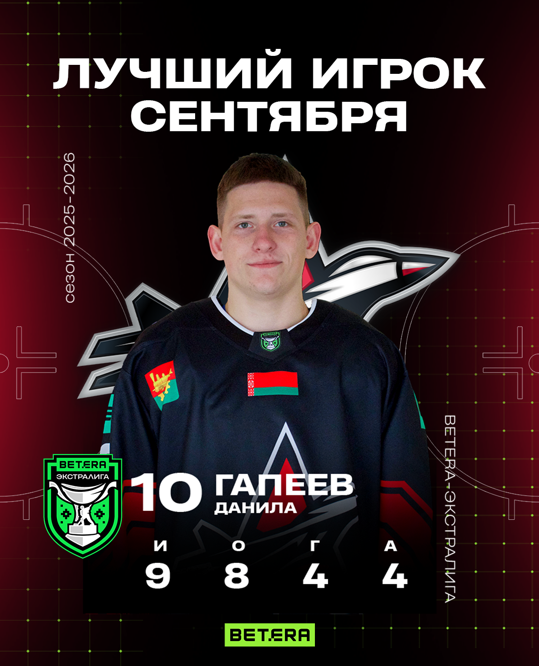 В сентябре Данила провел 9 матчей в Betera-Экстралиге, отметившись 8 (4+4) результативными баллами.