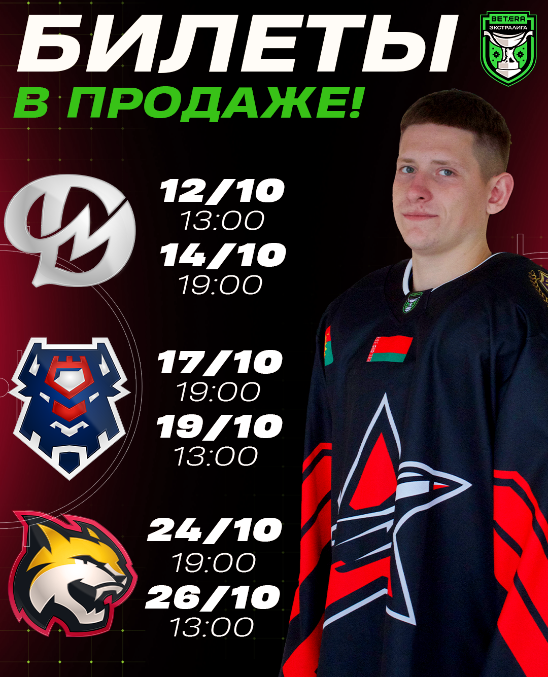 Уже в это воскресенье стартует продолжительная домашняя серия, где «летчики» поочередно сразятся с «Динамо-Молодечно» (12 и 14 октября), «Брестом» (17 и 19 октября) и «Гомелем» (24 и 26 октября).