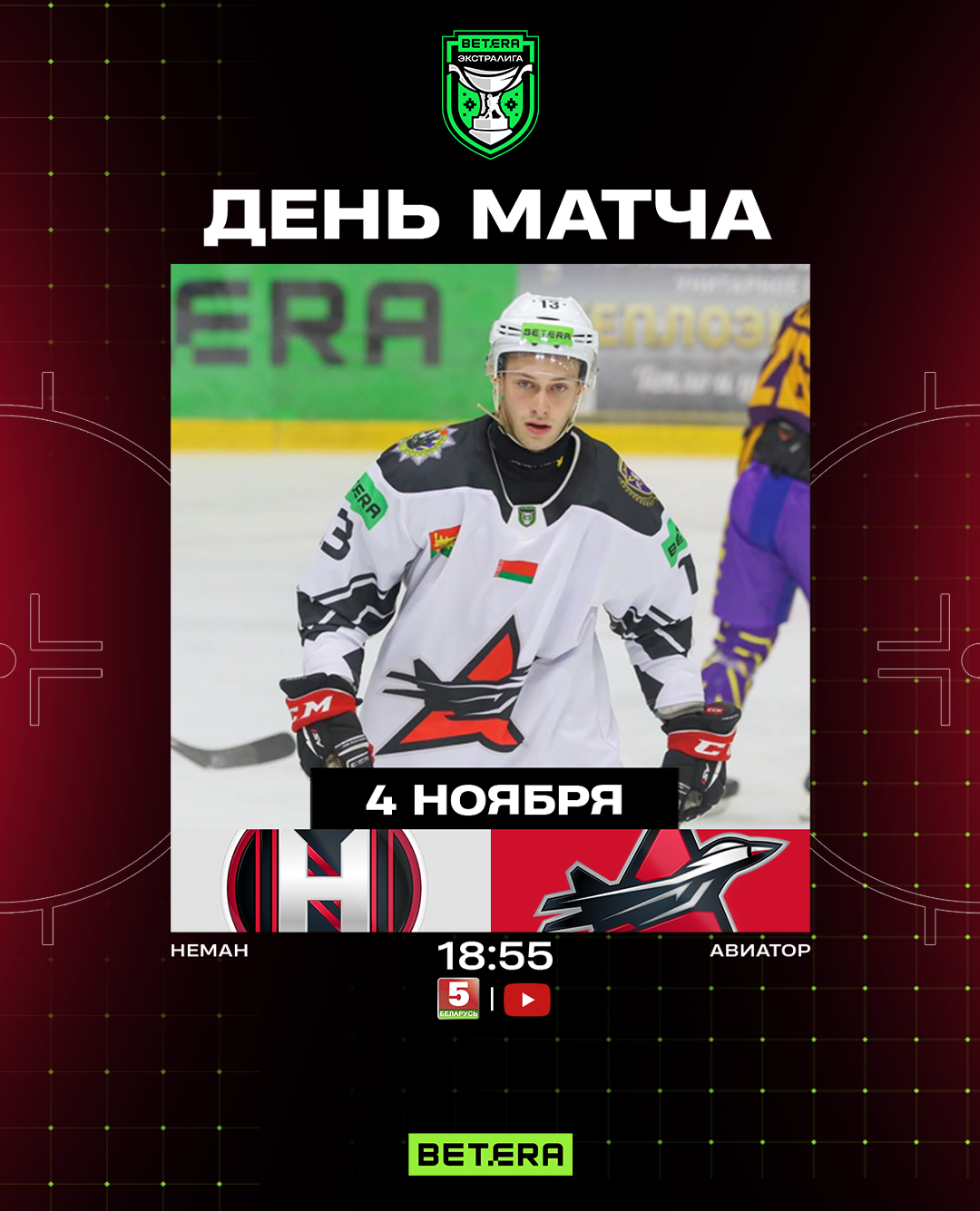 Первая игра мини-серии между гродненским «Неманом» и барановичским «Авиатором» состоится сегодня. Начало – в 18:55. Матч в прямом эфире покажет телеканал «Беларусь 5».