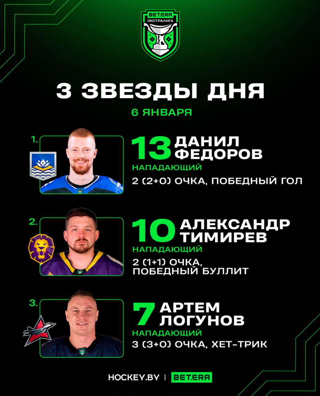 Артем Логунов стал третьей звездой игрового дня